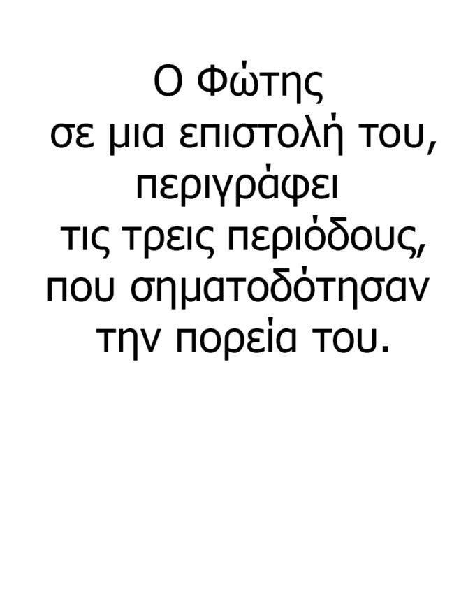In a letter, Fotis describes the three periods that marked his course. Εάν μου έλεγαν να επισημάνω τα γεγονότα που χαρακτηρίζουν την καλλιτεχνική μου πορεία ,θα αναφερόμουν γενικά σε τρείς περιόδους : την περίοδο της Ελλάδας (1940-1971), την περίοδο του Βερολίνου (1971-1989) και την περίοδο Θεσσαλονίκης, Βερολίνου, Αθήνας (1989-2020). Η πρώτη περίοδος των τριάντα δύο…