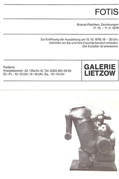 Η αποσπασματική φιγούρα – όχι σαν σύμβολο ακρωτηριασμού και τραυματισμού αλλά φωτεινή εμφάνιση ανθρώπινου σώματος με περιεχόμενο ουσίας. Ο Έλληνας γλύπτης Φώτης εμπλουτίζει το θέμα του με πολύμορφες αξιοπαρατήρητες νέες εμφανίσεις. Ο άνθρωπος παριστάνεται στα χάλκινα γλυπτά του ολότελα ως κορμός, χωρίς να χάνει την αξιοπρέπειά του. Η φόρμα δεν αναφέρεται τόσο πολύ στο περιεχόμενο καθαυτό, όσο στην φορμαλιστική υπέρβαση. Από αυτήν την άποψη τουλάχιστον εμφανίζεται η δημιουργία του καλλιτέχνη να κινείται στις πηγές της  κλασσικής γλυπτικής της πατρίδας του.