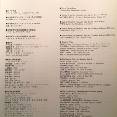 Η έκθεση που εγκαινιάσθηκε στις 22 Ιουλίου 1988 για το μεγάλο βραβείο Rodin, στο Utsukushi – Ga -Hara Μουσείο, θυγατρικό του Hakone, θα διαρκέσει μέχρι 31 Οκτωβρίου. Αυτή η έκθεση του βραβείου είναι αποτέλεσμα επιλογής 28 γλυπτών από διεθνή συμμετοχή 15 χωρών με 215 γλύπτες και 265 γλυπτά. Μετά την επιλογή και τοποθέτηση των έργων, η επιτροπή συνήλθε για να απονέμει τα βραβεία: ακολούθησε ένας πολύ ενδιαφέρον διάλογος με τοποθέτηση επί των έργων. Η επιτροπή συγκροτείτο από τους κάτωθι: