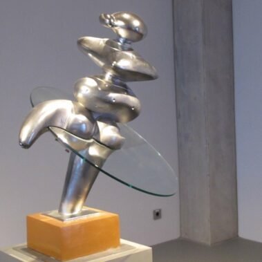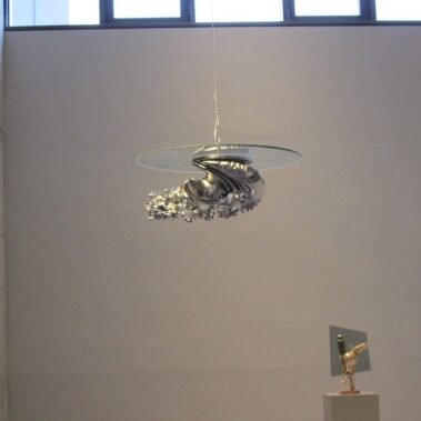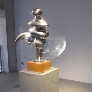Άξιο προσοχής είναι επίσης οι τρεις γυάλινες κυκλικές επιφάνειες που τέμνουν το γλυπτό. Σύμφωνα με τον καλλιτέχνη,  μια τέτοια παρεμβολή εμπλουτίζει για διάφορους λόγους την πλαστικότητα του γλυπτού και την διευρύνει σε μια ακόμη διάσταση, αυτήν της ροής του χρόνου. Έτσι προστίθεται στο σύνολο του γλυπτού η τέταρτη διάσταση. Οι γυάλινες αυτές πλάκες δεν είναι μόνο διαφανείς ώστε να επιτρέπουν ανενόχλητα να εμφανίζεται το γλυπτό, αλλά συγχρόνως και το σπουδαιότερο είναι ότι μεταμορφώνονται σε οθόνες που αντανακλούν εικόνες και εντυπώσεις από το άμεσο περιβάλλον, είτε είναι χρώματα από το ηλιοβασίλεμα, σύγνεφα που τρέχουν στον ουρανό ή φυλλώματα από δέντρα κ.ά. Όλα αυτά προστίθενται σαν δυναμικά στοιχεία στον στατικό χαλκό.