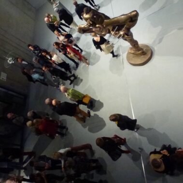 Για να αναδειχθεί κάποιος στην αθλητική αρένα, θα πρέπει το σώμα για πολύ καιρό να υποταχθεί  στην αυστηρή αναγκαιότητα της άσκησης, ώστε να είναι προετοιμασμένο για ακραίες επιβαρύνσεις. Η ομορφιά του γλυπτού που εντυπωσιάζει άμεσα, κρατάει με συνέπεια τις αντιτιθέμενες γραφές μεταξύ δυσαναλογιών από χέρια και πόδια, το αφηρημένο και σχεδόν εξαφανισμένο κεφάλι και τις ρωγμές που υπάρχουν στην επιφάνεια του χαλκού και ιδιαίτερα στις αρθρώσεις. Αν  και απέχει αυτή η χορεύτρια πολύ από μια ρεαλιστική παράσταση, παρά ταύτα καλεί τον παρατηρητή να την ιδεί και να την βιώσει υποκειμενικά: καθότι ο κορμός εμφανίζεται να είναι μικρότερος σχετικά με τα χέρια και τα πόδια, που αναγκαστικά σε αυτό το άθλημα υπερτερούν μυϊκά και τυλίγονται γύρω από το σώμα ώστε να το παραμορφώνουν.